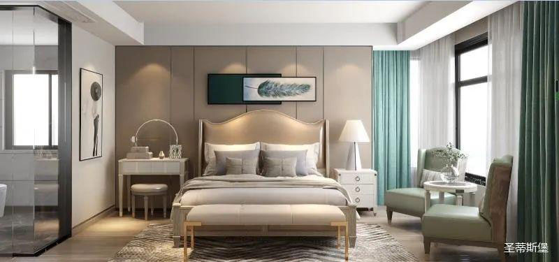 ▲次卧空间主要是以浅色为底调,大面积的莫兰迪色与浅色相平衡。极强线性装饰画带来的延伸感让视觉焕然一新。少许的金属元素摄入,瞬间提升了空间的精致度,将温润雅致与时尚轻奢糅合在同一空间里,每一处都洋溢着浪漫的气息。