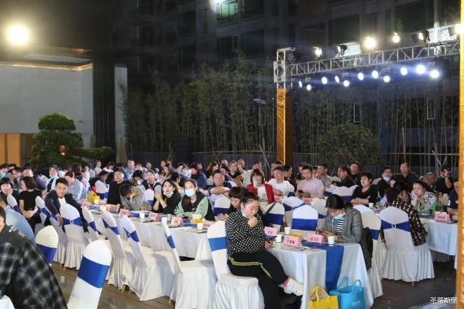 经销商晚宴当日晚6时许,以【乘“圣”跨越】为主题的,PA视讯集团第45届国际家具展接待晚宴暨2020年度优秀经销商颁奖盛典,在营销中心四楼景观花园隆重举行,来自全国各地的经销商朋友欢聚一堂,共同分享一场精彩纷呈的晚宴。