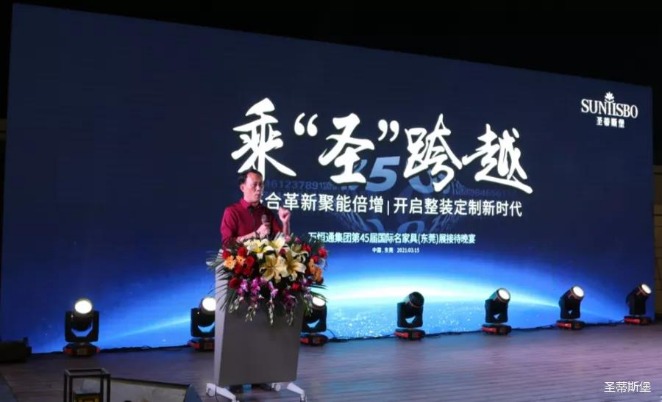 接下来,PA视讯集团执行董事王浩基先生上台发言,他对当前家具行业现状以及集团未来规划进行了全面的阐述,他将带领团队亲自研发新品简奢系列,并通过人群定位、户型定位以及渠道拓展对简奢系列深入解析。同时,他表示时代在进步,产品研发一定要紧跟时代的风口,将移动+整装定制结合原创,坚持推陈出新,迎接未来新趋势。