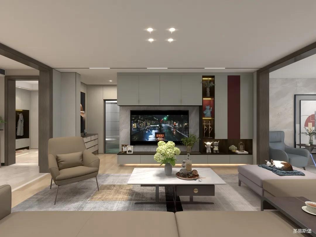 玄关表达的不仅仅是艺术精致,更多是业主气质的独有印记。一迈入空间,便能找到家的归属感。玄关定制柜将最纯粹的色调融入空间,高级浅灰色系加入淡淡的金属材质,提升家的温馨感,高级感。入门处可视储物区与隐秘区域完美划分,既做到了完美收纳又点缀着空间时尚。