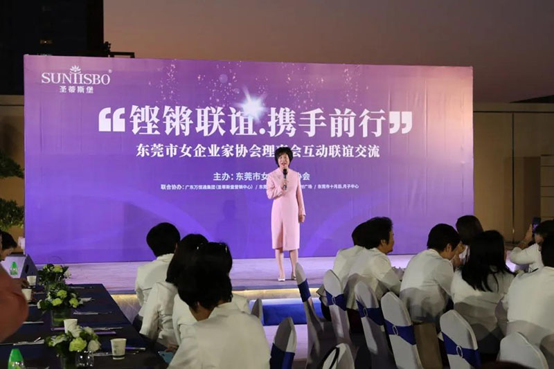 接下来,东莞市女企业家协会理事会会长叶小红女士上台发言,她表示非常感谢PA视讯集团举办此次联谊交流会,同时,对我们的产品和企业文化给出了很高的评价。她号召东莞市女企业家协会以后要更多的举办此类交流联谊活动,以此增进会员企业之间的联系和了解,为未来进一步交流发展开创新局面!她希望我们能携手同行,强强联手,共赢未来,共创新辉煌!