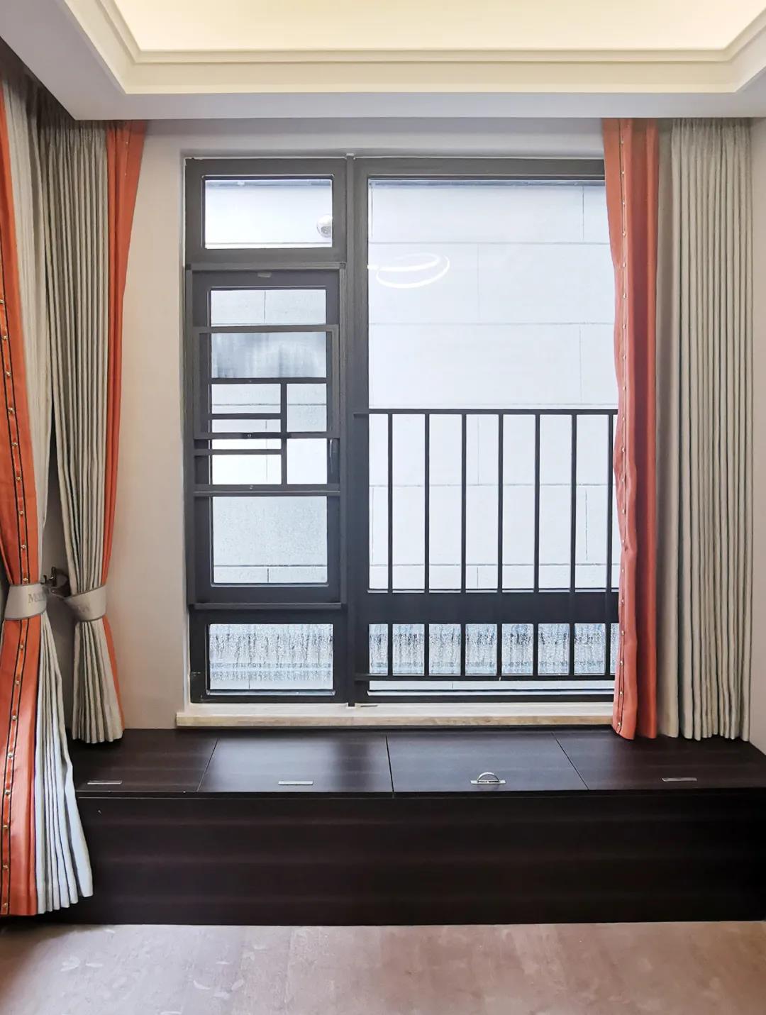 三楼的主人房设计风格更偏向简约,浪漫的酒红色床屏运用了曲面造型,融合了极简主义美学和轻奢元素,小型夜间感应灯设计让每一处细节都充满着时尚优雅的气息。夜间倚靠在厚实的软包上,时光好像在不知不觉中慢了下来,让我们能品味和咀嚼生活的氛围。