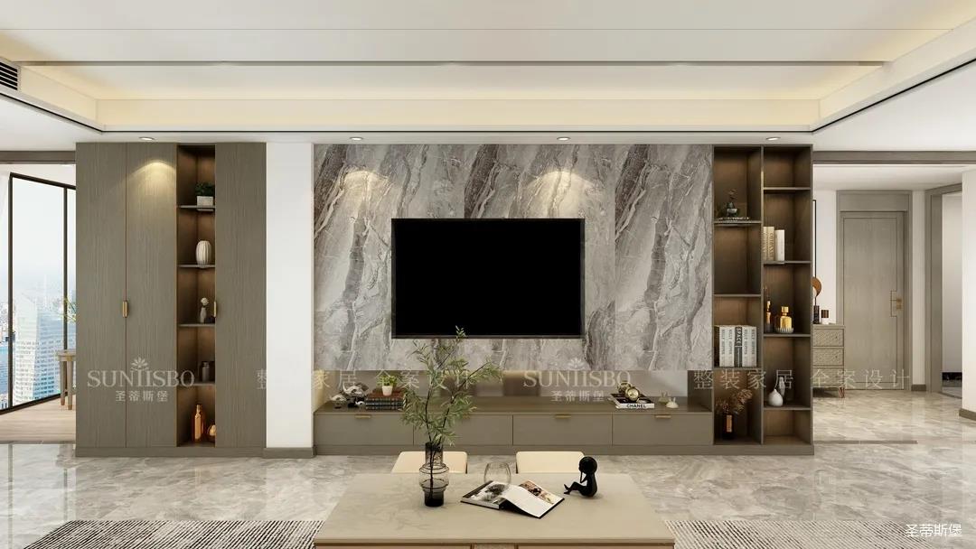 大理石的优雅纹理,集实用收纳一体的定制壁柜,