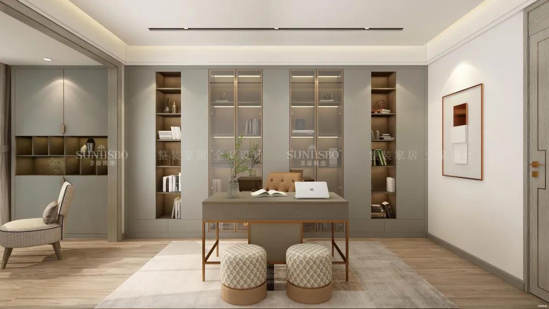书房空间整体气质柔和、安静,