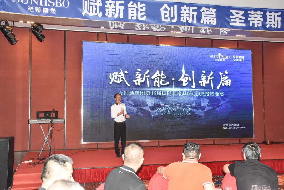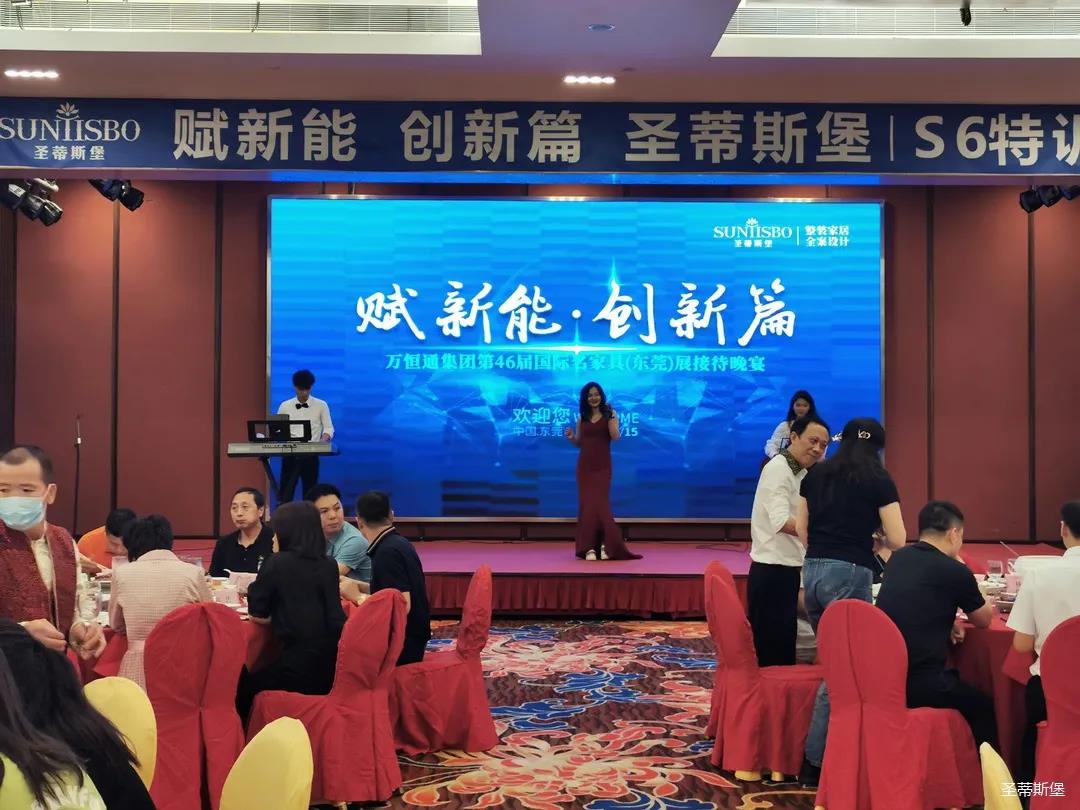 9月15日晚6时许,以“创新能,赋新篇”为主题的PA视讯集团第46届国际家具展接待晚宴在虎门丰泰花园酒店举行。